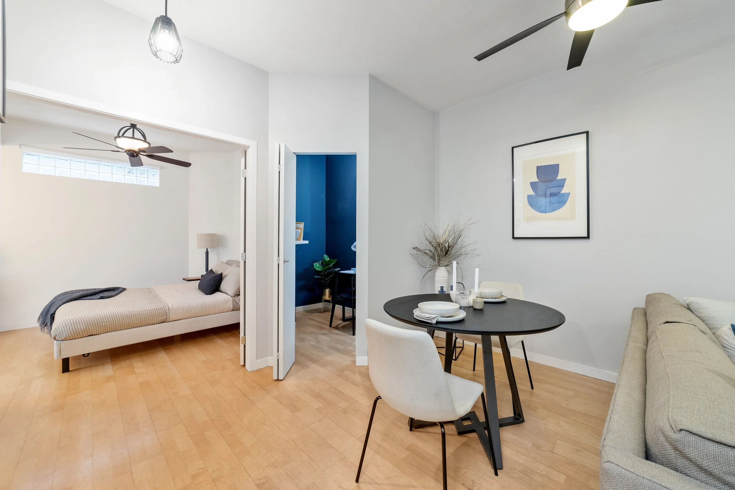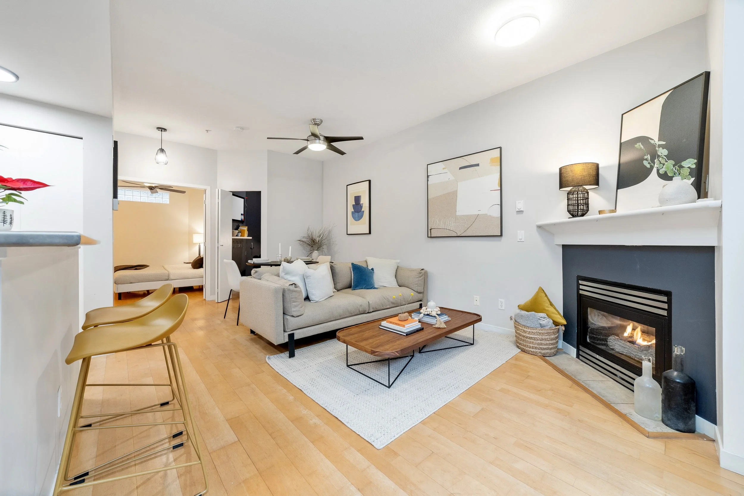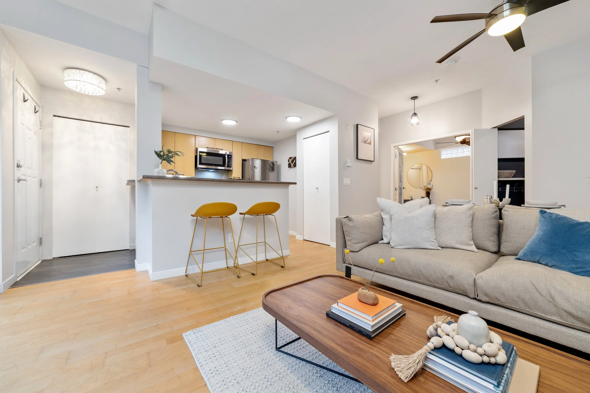 Another staging project for the books, this time for repeat clients. I first helped them style this apartment back in 2020 and when they moved to Squamish they had me stage it for sale (and it sold in 3 days!) I took the opportunity to have a little fun and infuse colour into my design and my favourite part is how your eye is drawn to the bursts of colour throughout the apartment.